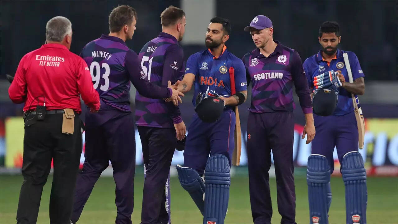 Virat Kohlis men lost both their opening matches in Group 2 of the Super 12 stage against Pakistan 10 wickets and New Zealand by 8 wickets which puts them at the risk of an early exit from the competition. The Scottish team had earlier got their Round 1 campaign off to a stirring start with a narrow six-run win over Bangladesh and would go on to defeat Papua New Guinea as well as Oman comfortably to progress to the Super 12s. The men in blue clashed with the men in green in Dublin on the 27th an.